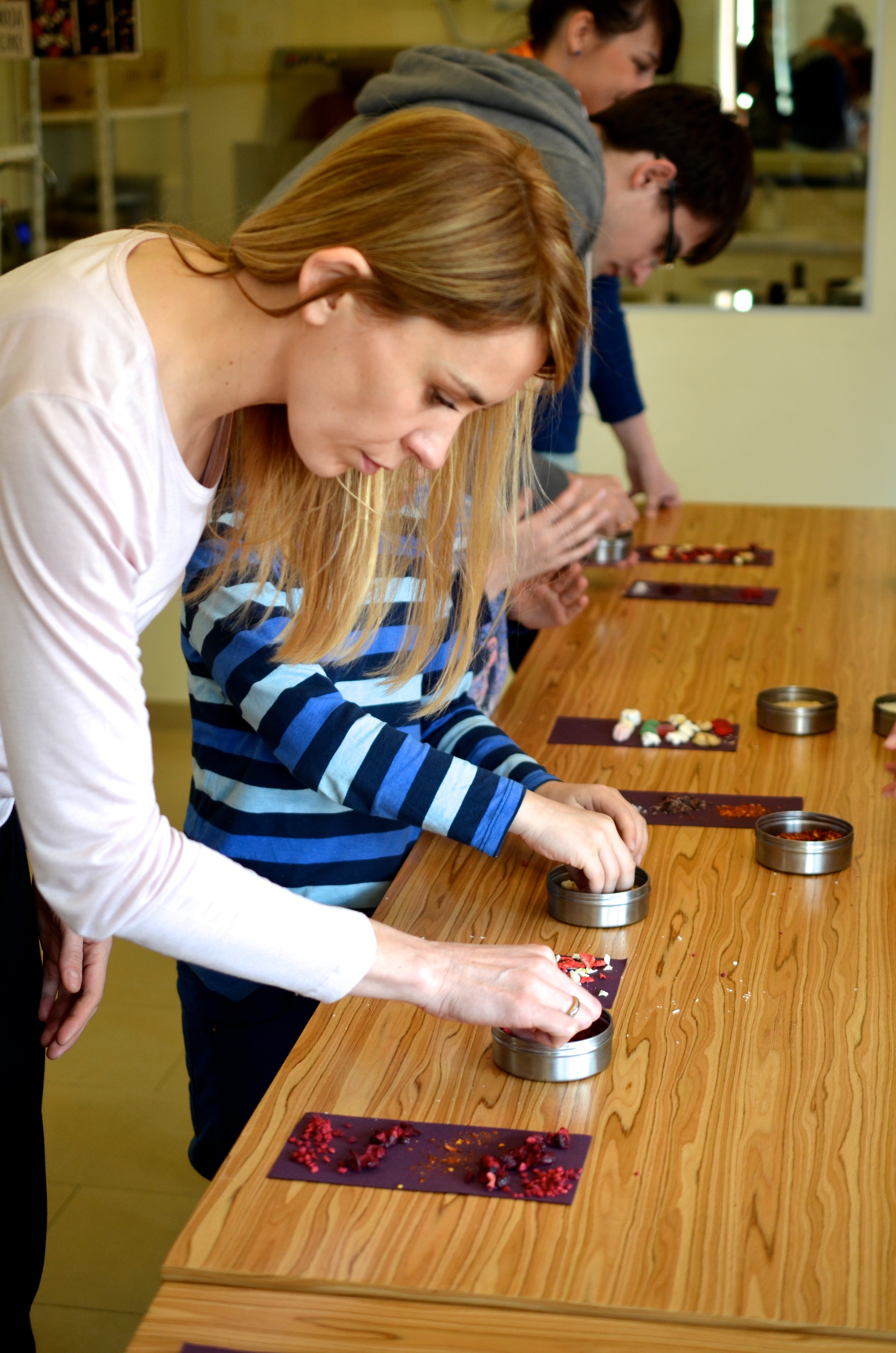 Gości odwiedzających czekoladziarnię przywita sprzedawczyni „czekoladowych marzeń”. Chętnie opowie wiele słodkich ciekawostek i historii. Na przykład o tym, że czekolada z wdziękiem ugości anielską wanilię, aromatyczny imbir, a nawet kwiat soli morskiej. Na naszeżyczenie specjalnie wyselekcjonowane ziarna kakao zamienią się w zmysłową i naturalnie gęstą czekoladę na gorąco. Dzięki takim pysznościom pobyt w lokalu przy Brukowej 6a może się nieco wydłużyć. Warto wówczas zaobserwować proces produkcji czekolady odbywający się za szklaną ścianą w lokalu. Na miejscu przebiega hartowanie, formowanie, chłodzenie, zdobienie i pakowanie tabliczek. Wszystko zgodnie z ideą – naturalnie – od ziarenka kakao aż do gotowej tabliczki. Bez spulchniaczy, aromatów i ulepszaczy. Bez drogi na skróty.