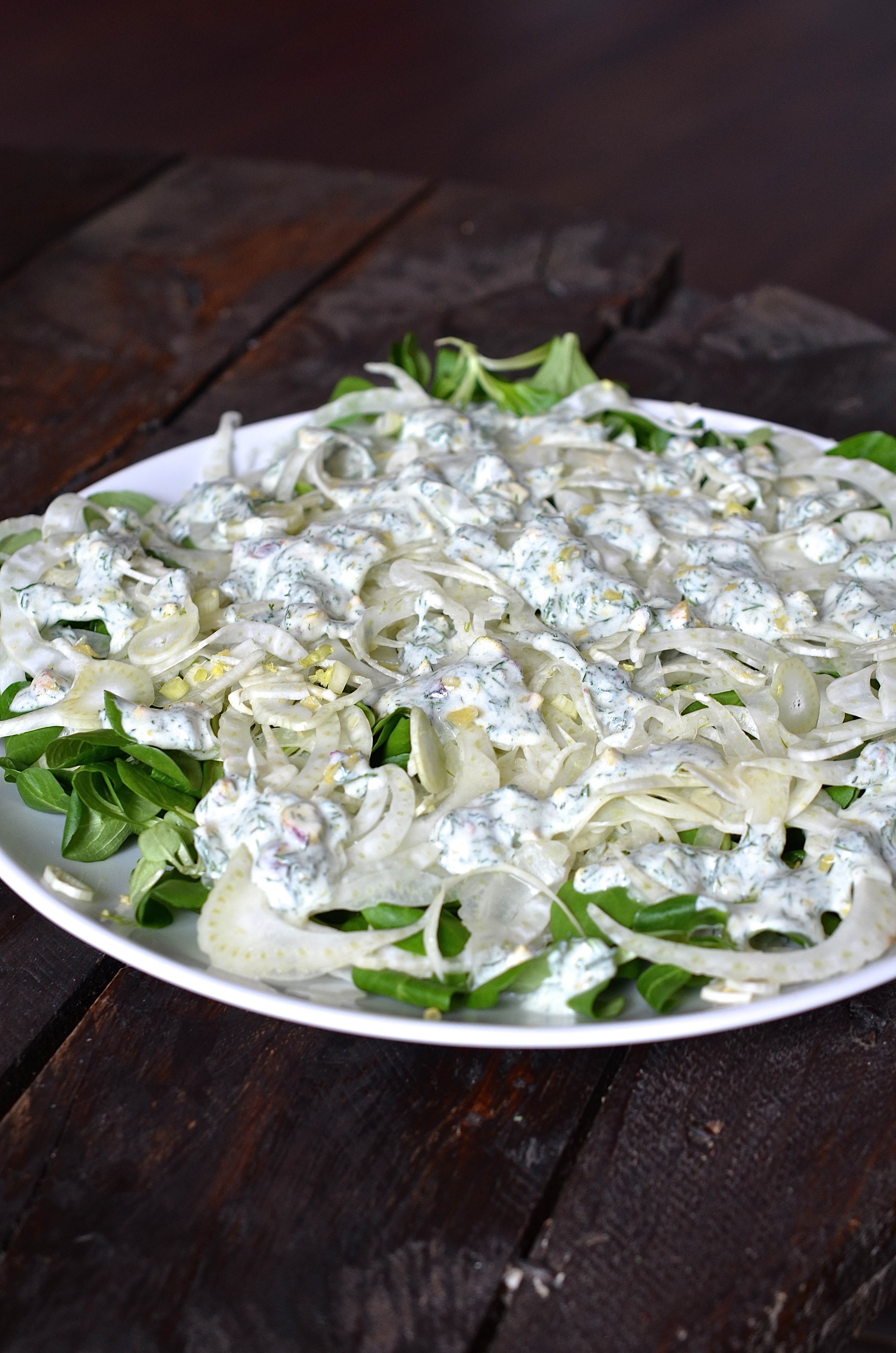 Sałatka z kopru włoskiego z roszponką, pistacjami i jogurtem naturalnym